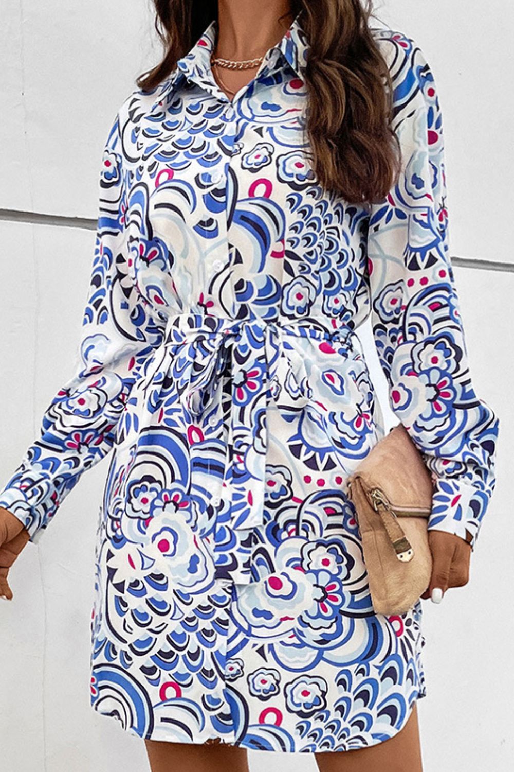 - Features: Buttoned, Tie