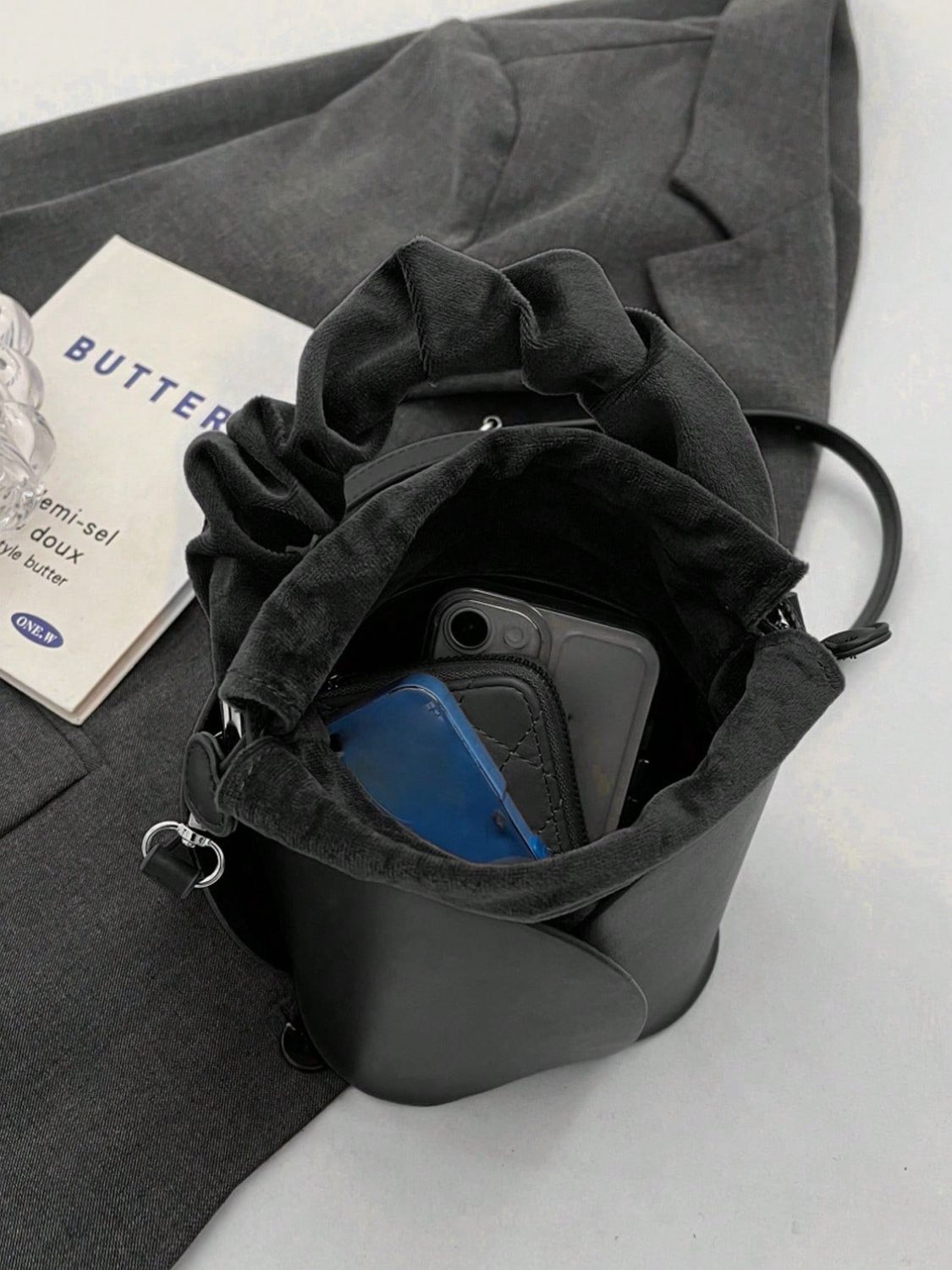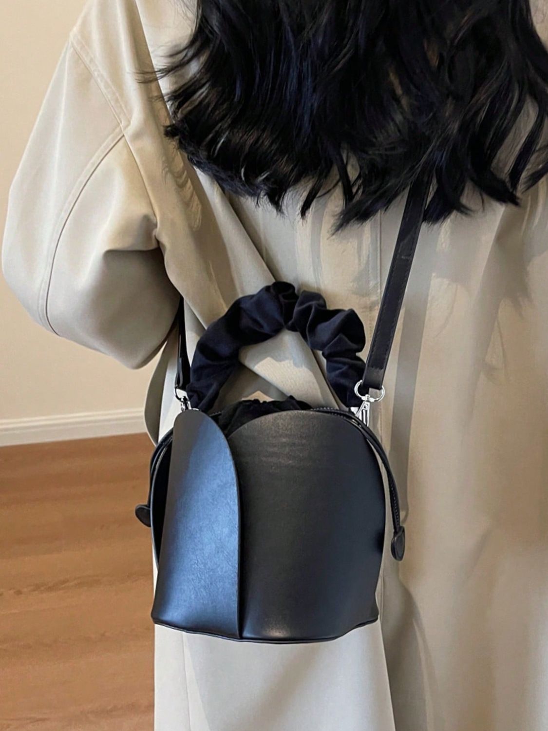 PU Leather Drawstring Bucket Bag
